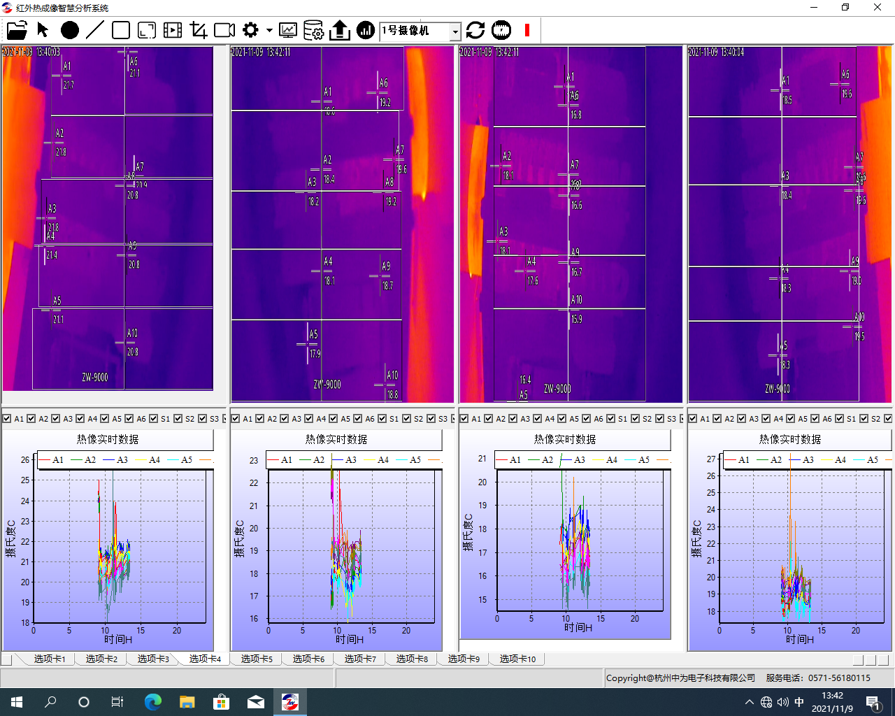 發(fā)電機(jī)碳刷在線監(jiān)測系統(tǒng)軟件預(yù)先使用多邊形區(qū)域測溫工具將重點(diǎn)部位框選出來,區(qū)域內(nèi)最高點(diǎn)溫?cái)?shù)值及位置實(shí)時(shí)顯示,以實(shí)現(xiàn)重點(diǎn)部位重點(diǎn)監(jiān)控的目的。系統(tǒng)軟件所配置的點(diǎn)、線、多邊形測溫工具所框選的測溫區(qū)域都是相互獨(dú)立的,任意區(qū)域內(nèi)溫度、溫升達(dá)到其區(qū)域設(shè)置的閾值都能觸發(fā)高溫報(bào)警。