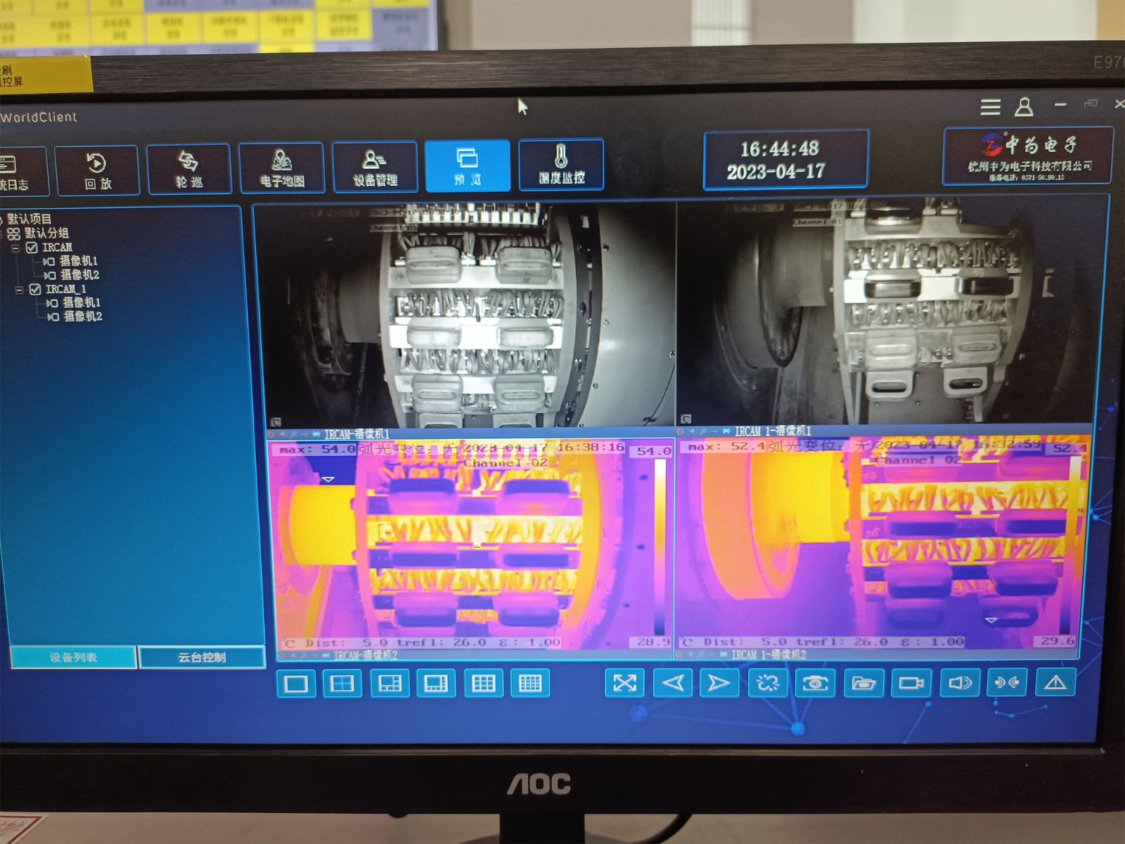 2023年4月,浙江浙能溫州發(fā)電有限公司7號(hào)機(jī)組完成安裝發(fā)電機(jī)碳刷紅外熱成像智慧分析系統(tǒng)增補(bǔ),現(xiàn)場(chǎng)采用雙光融合熱成像儀,200w分辨率可見(jiàn)光與384*288分辨率熱像儀搭配,配合系統(tǒng)軟件全面升級(jí),首創(chuàng)HyPix超分辨率顯示技術(shù),可見(jiàn)光成像與紅外熱像圖技術(shù)雙光融合,利用復(fù)合調(diào)色聚焦成像技術(shù),提高紅外熱圖像的清晰度,更好的展現(xiàn)設(shè)備細(xì)節(jié)。該技術(shù)可實(shí)現(xiàn)低分辨率高清成像,比如分辨率為384*288的紅外探測(cè)器,經(jīng)軟件自動(dòng)處理分析數(shù)據(jù),可生成質(zhì)量媲美640×480分辨率的熱像圖。優(yōu)化界面布局,碳刷溫度情況直接顯示在紅外畫(huà)面左側(cè),一目了然了解碳刷溫度分布情況,配合實(shí)時(shí)溫度曲線、月度報(bào)告等功能,全面監(jiān)測(cè)碳刷多種運(yùn)行重要參數(shù),為發(fā)電機(jī)組安全運(yùn)行保駕護(hù)航。