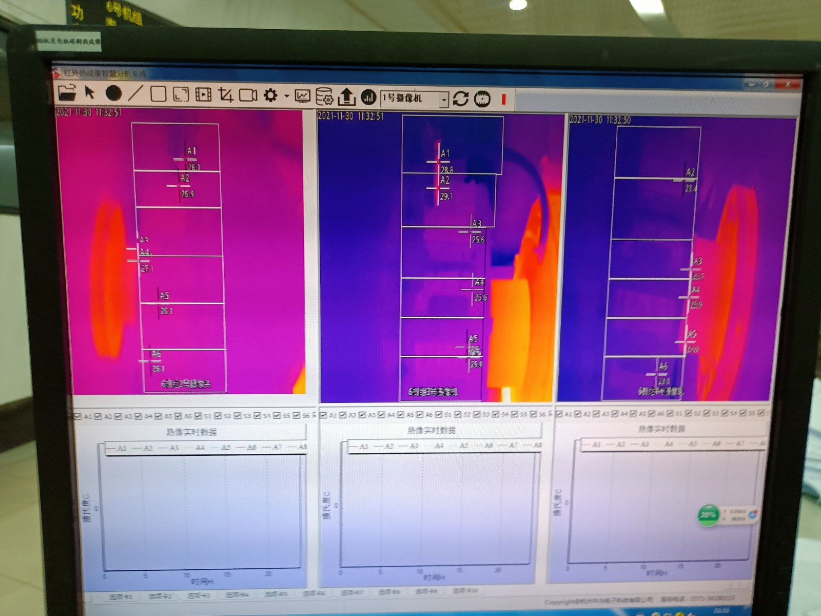 2021年11月,浙江浙能溫州發(fā)電有限公司5、6號發(fā)電機(jī)合計(jì)完成增補(bǔ)安裝發(fā)電機(jī)碳刷紅外監(jiān)測熱像儀4套,畫面清晰穩(wěn)定,溫度監(jiān)控精準(zhǔn);并將現(xiàn)場溫度報(bào)警傳入DCS控制系統(tǒng)中,更好的監(jiān)測碳刷運(yùn)行情況。