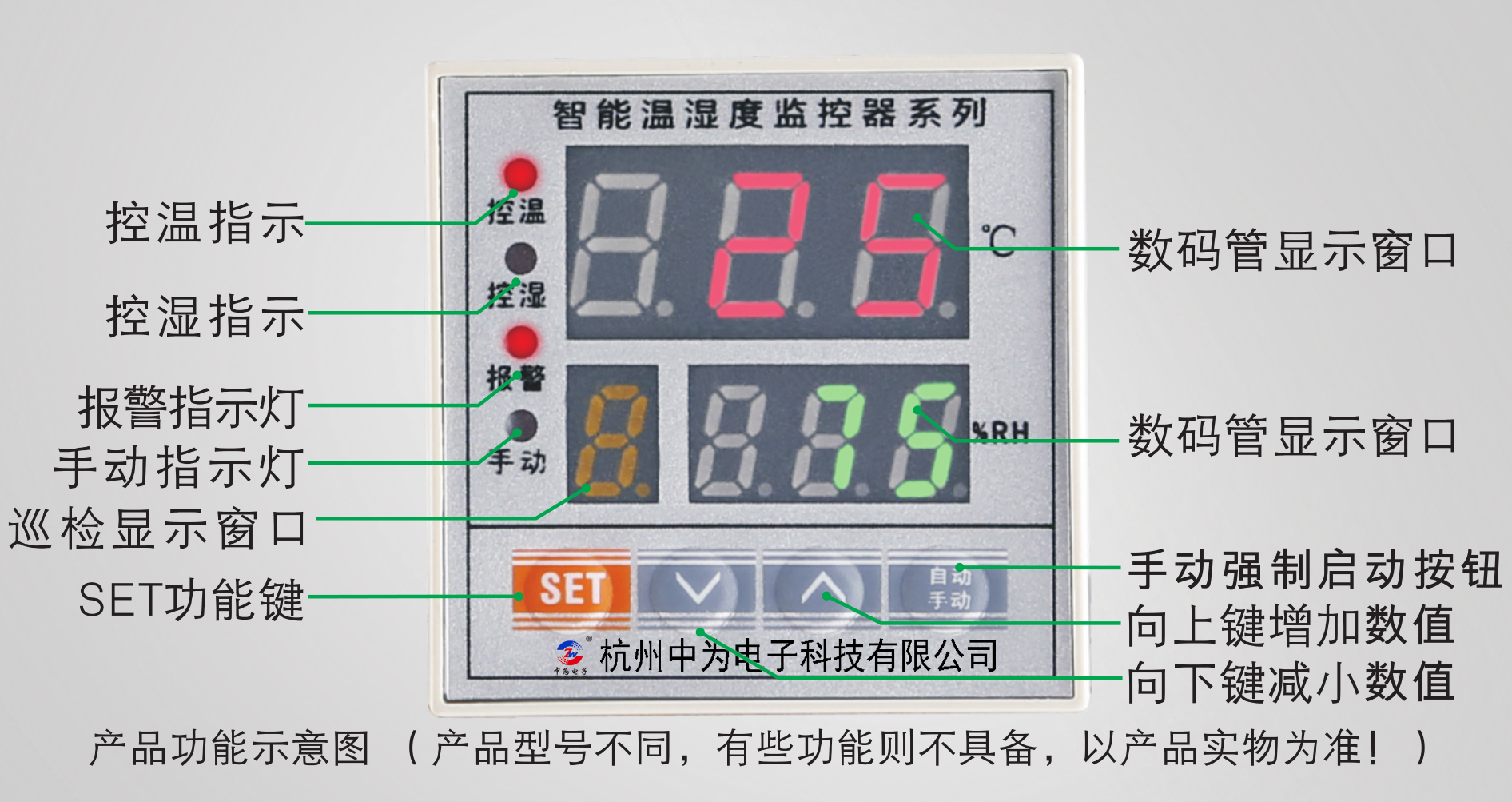 3.除濕型:當(dāng)測量濕度值大于設(shè)置濕度時,啟動除濕負(fù)載,當(dāng)測量濕度小于